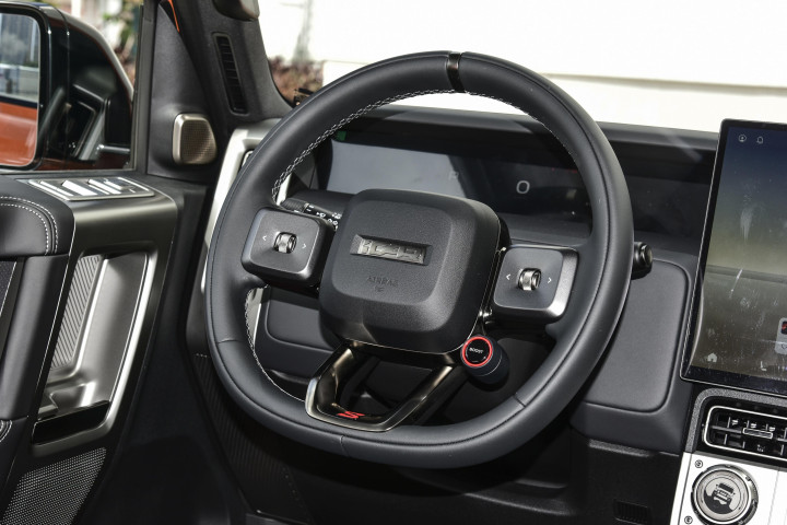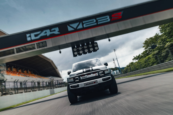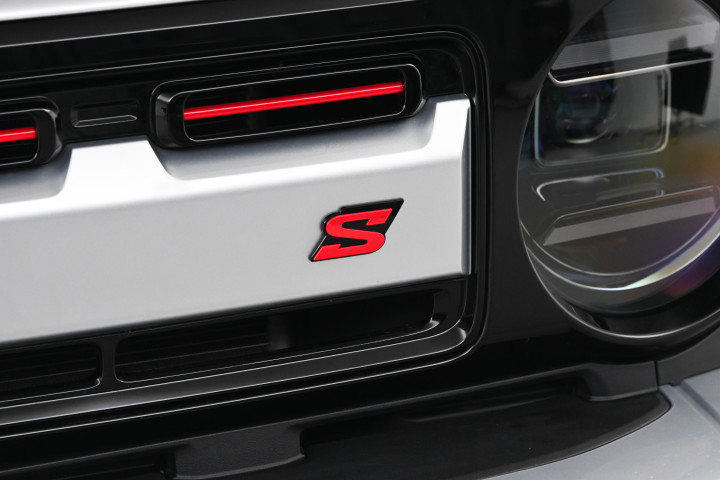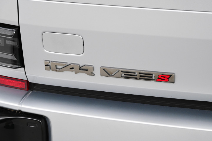 从外观看,2026款新车与2025款样子没有太大改动,还是我们熟悉的方盒子外观,细节之处有小升级,比如这次版本中新推V23S车型,注重性能的版型,在车头格栅以及左右翼子板上出现了“S”标与普通版加以区分。由于V23S的轮毂尺寸增大到21英寸,所以车辆的接近角与离去角比普通版各增加1度。车身尺寸上两款并无区别,车长4米22,轴距2米735。